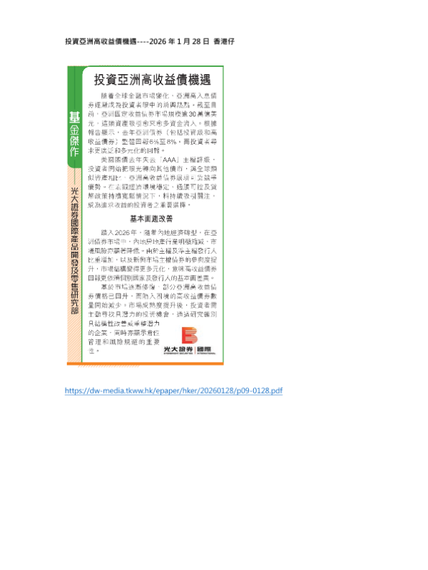 【光大证券(国际)】【202601】投资亚洲高收益债机遇-1页 证券期货研究报告