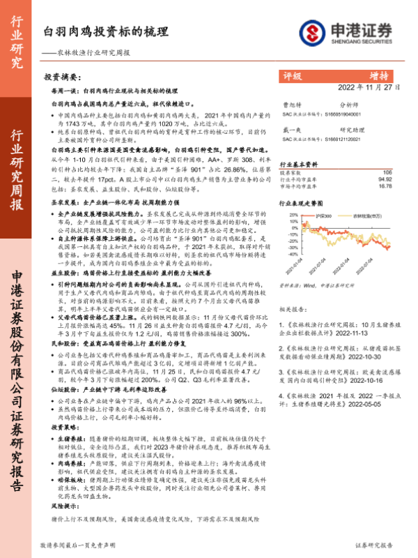 【申港证券】【20221127】20221127-申港证券-农林牧渔行业研究周报:白羽肉鸡投资标的梳理-15页 行业研究
