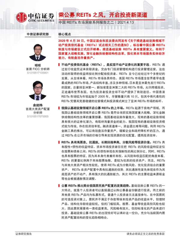 【中信证券】【20210413】中国REITs市场洞察系列报告之二:乘公募REITs之风,开启投资新渠道-14页 行业研究