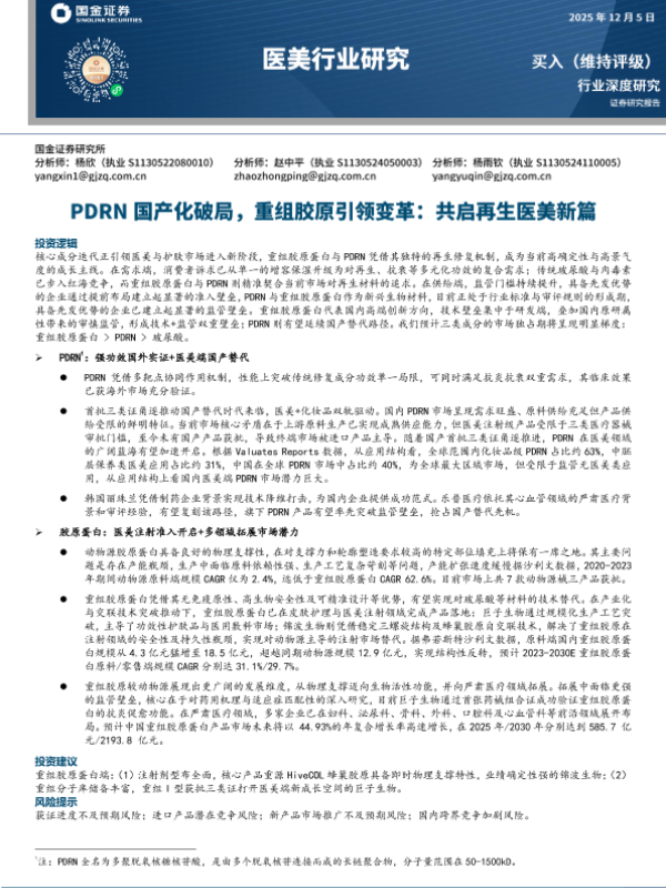 【国金证券】【202512】PDRN国产化破局,重组胶原引领变革 共启再生医美新篇-28页 证券期货研究报告