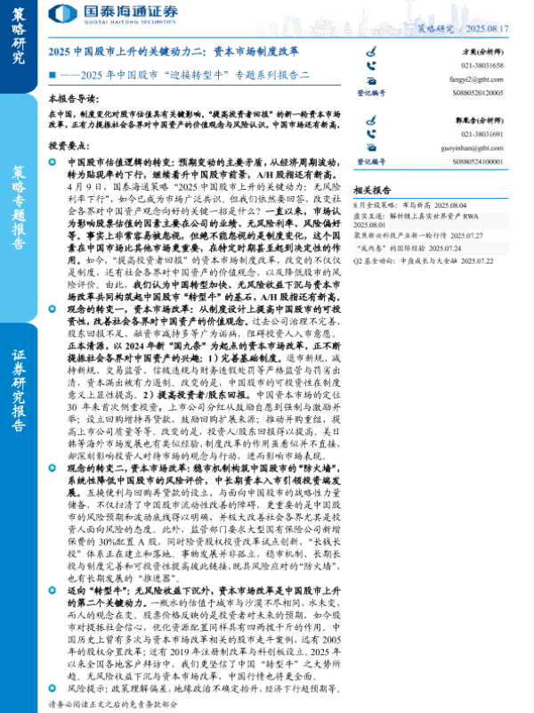 【国泰海通证券】【202508】2025中国股市上升的关键动力二:资本市场制度改革-41页 证券期货研究报告