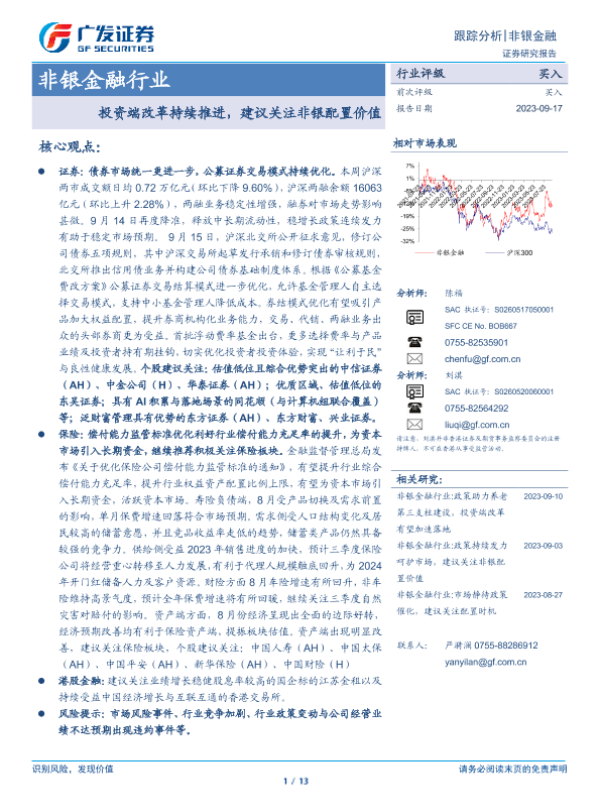 【广发证券】【20230917】非银金融行业:投资端改革持续推进,建议关注非银配置价值-13页 行业研究