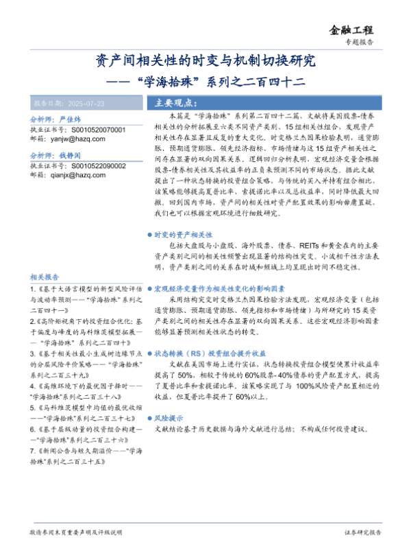 【华安证券】【20250723】资产间相关性的时变与机制切换研究-18页 证券期货研究报告