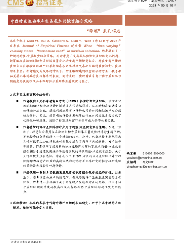 【海通证券】【20230919】“琢璞”系列报告:考虑时变波动率和交易成本的投资组合策略-21页 行业研究