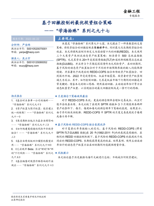 【华安证券】【20220622】基于回撤控制的最优投资组合策略——“学海拾珠”系列之九十七-19页 行业研究