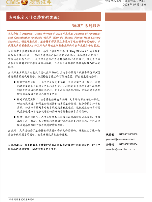 【海通证券】【20230712】共同基金为什么持有彩票股?-17页 行业研究