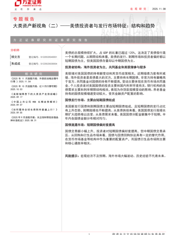 【方正证券】【202511】大类资产新视角(二)——美债投资者与发行市场特征:结构和趋势-49页 证券期货研究报告