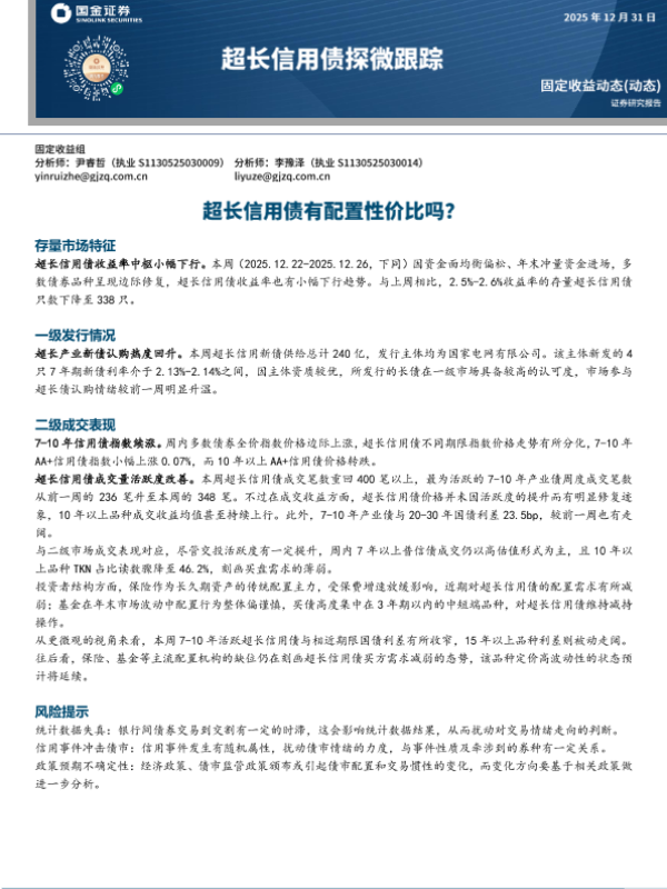 【国金证券】【202512】超长信用债有配置性价比吗?-11页 证券期货研究报告