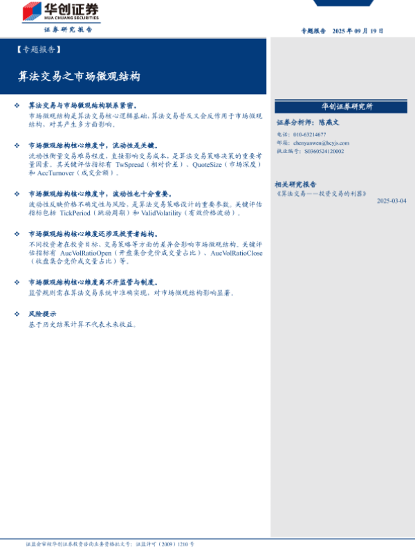 【华创证券】【202503】算法交易之市场微观结构-20页 证券期货研究报告