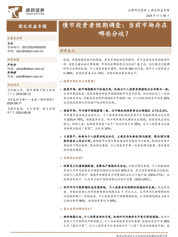 【德邦证券】【20241106】债市投资者预期调查:当前市场存在哪些分歧?-11页 行业研究