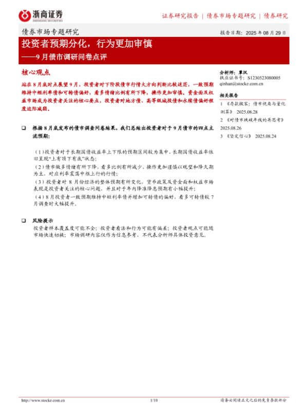 【浙商证券】【20250829】投资者预期分化,行为更加审慎-9月债市调研问卷点评-10页 证券期货研究报告
