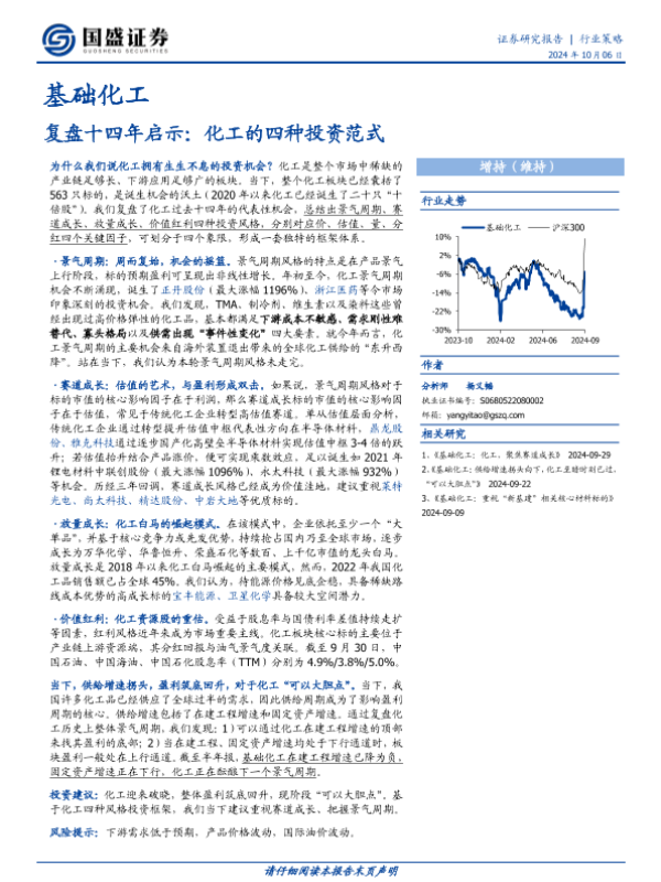 【国盛证券】【20241006】基础化工行业复盘十四年启示:化工的四种投资范式-27页 行业研究