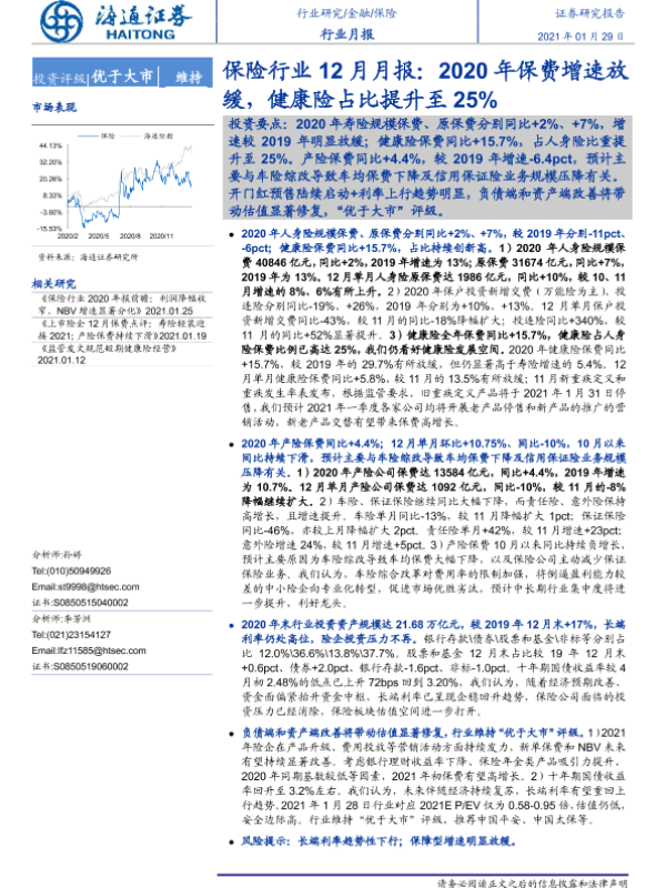 【海通证券】【20210129】2020年保费增速放缓,健康险占比提升至25%-5页 行业研究