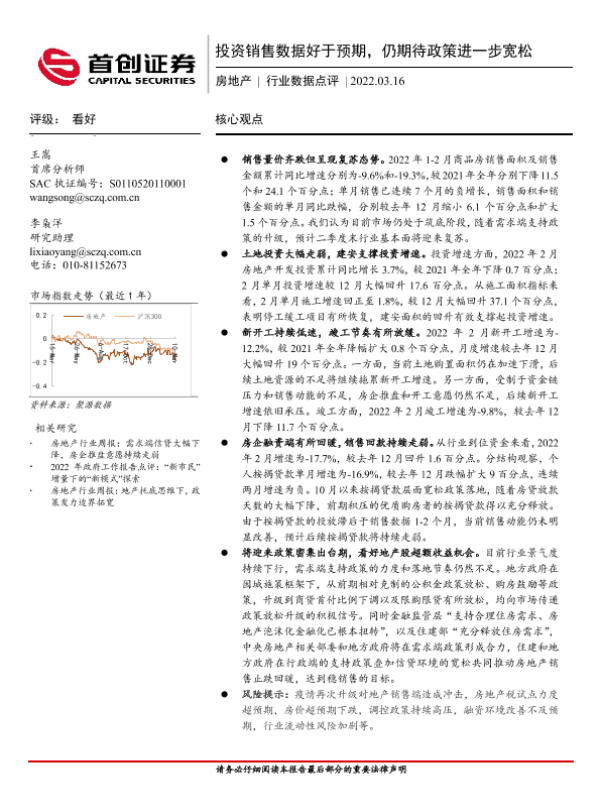 【首创证券】【20220316】房地产行业数据点评:投资销售数据好于预期,仍期待政策进一步宽松-9页 行业研究