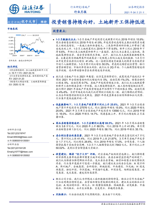 【海通证券】【20210421】房地产行业月报:投资销售持续向好,土地新开工保持低迷-12页 行业研究