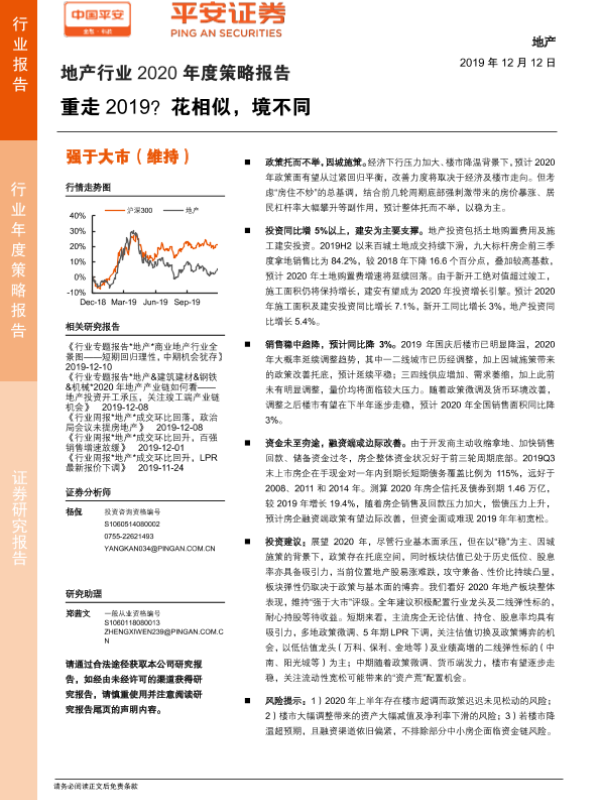 【平安证券】【20191212】地产行业2020年度策略报告:重走2019?花相似,境不同-41页 行业研究