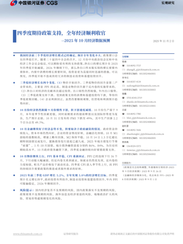 【银河证券】【202510】2025年10月经济数据预测:四季度期待政策支持,全年经济顺利收官-12页 证券期货研究报告