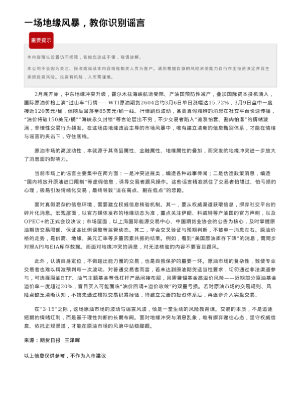 【瑞达期货】【202303】一场地缘风暴,教你识别谣言-2页 证券期货研究报告