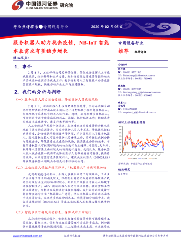 【银河证券】【20200206】专用设备行业:服务机器人助力抗击疫情,NB-IoT智能水表需求有望稳步增长-4页 行业研究