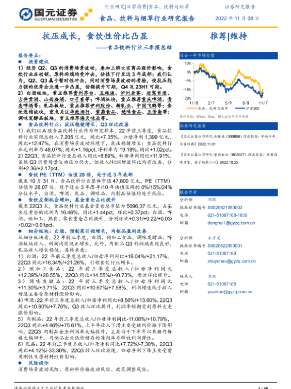 【国元证券】【20221109】食品饮料行业三季报总结:抗压成长,食饮性价比凸显-40页 行业研究