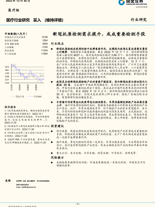 【国金证券】【20221202】医疗行业研究:新冠抗原检测需求提升,或成重要检测手段-10页 行业研究