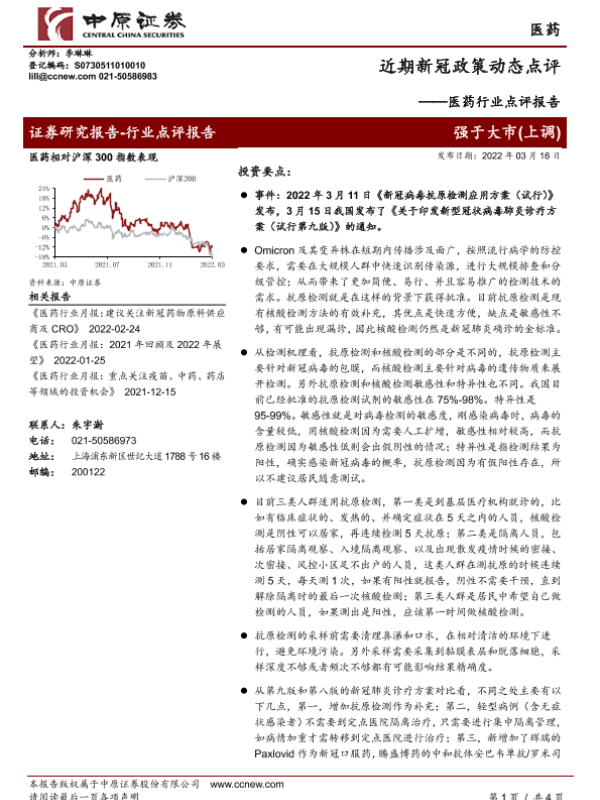 【中原证券】【20220316】近期新冠政策动态点评-4页 行业研究