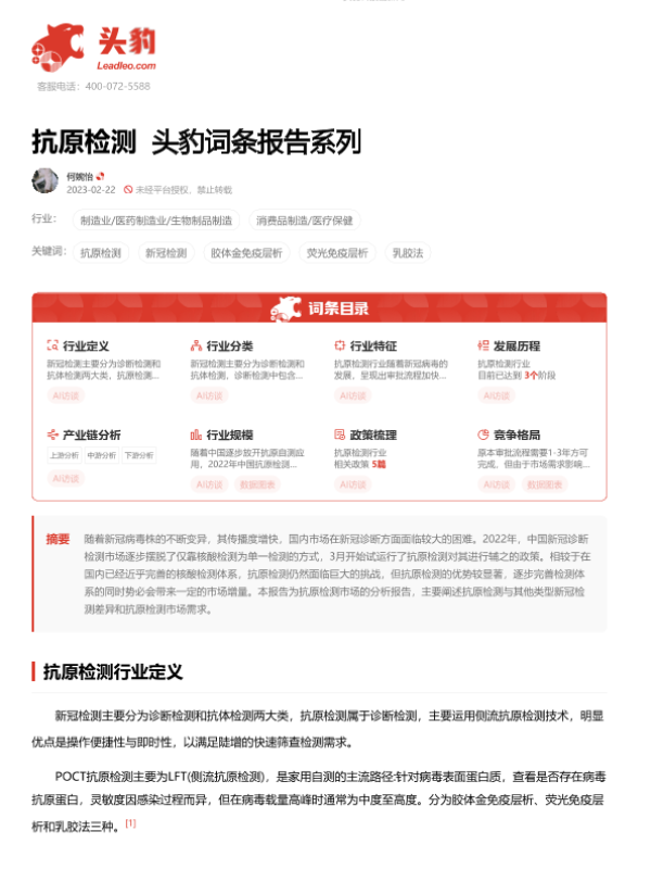 【头豹研究院】【20230612】抗原检测 头豹词条报告系列-19页 行业研究