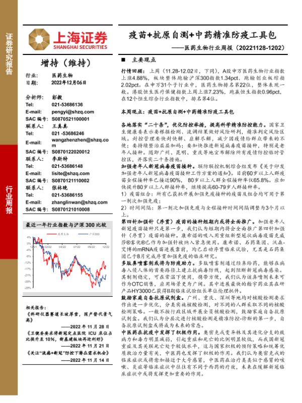 【上海证券】【20221206】医药生物行业周报:疫苗+抗原自测+中药精准防疫工具包-25页 行业研究