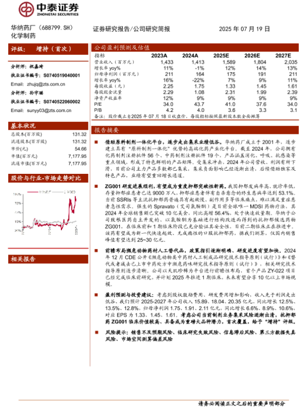 【中泰证券】【20250719】华纳药厂逐步走出集采低谷,抗抑郁新药潜力巨大-15页 公司研究