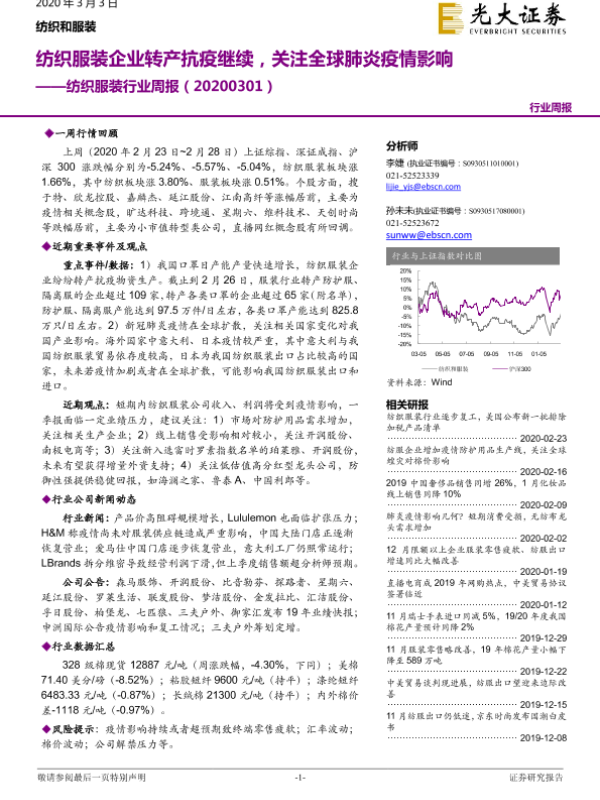 【光大证券】【20200303】纺织服装企业转产抗疫继续,关注全球肺炎疫情影响-22页 证券期货研究报告