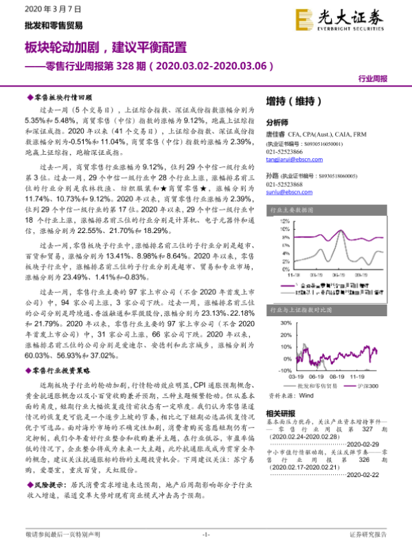 【光大证券】【20200307】零售行业周报第328期:板块轮动加剧,建议平衡配置-9页 行业研究