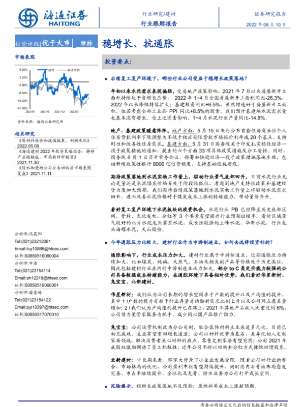 【海通证券】【20220610】建材行业跟踪报告:稳增长、抗通胀-3页 行业研究