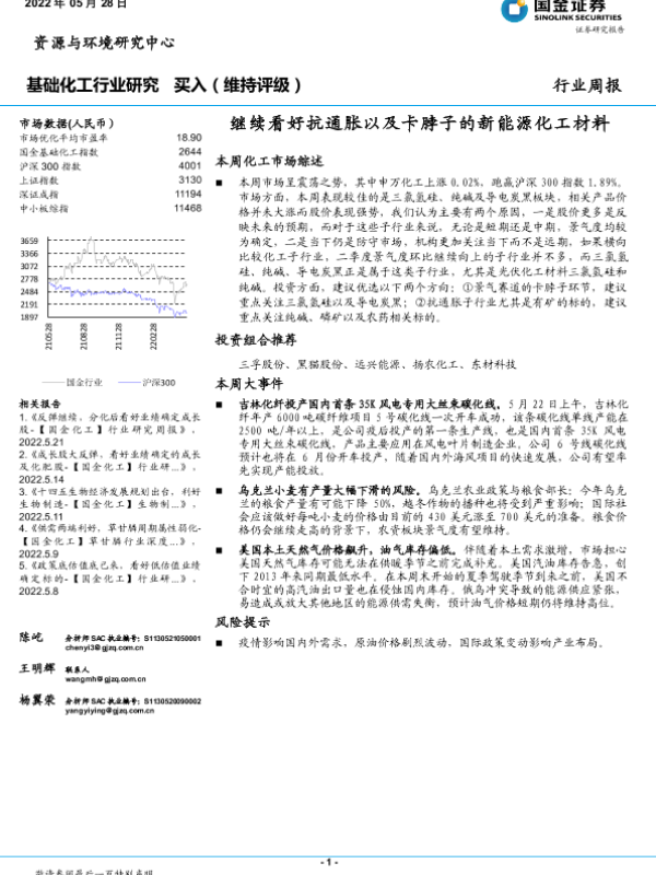 【国金证券】【20220528】20220528-国金证券-基础化工行业研究:继续看好抗通胀以及卡脖子的新能源化工材料-24页 行业研究