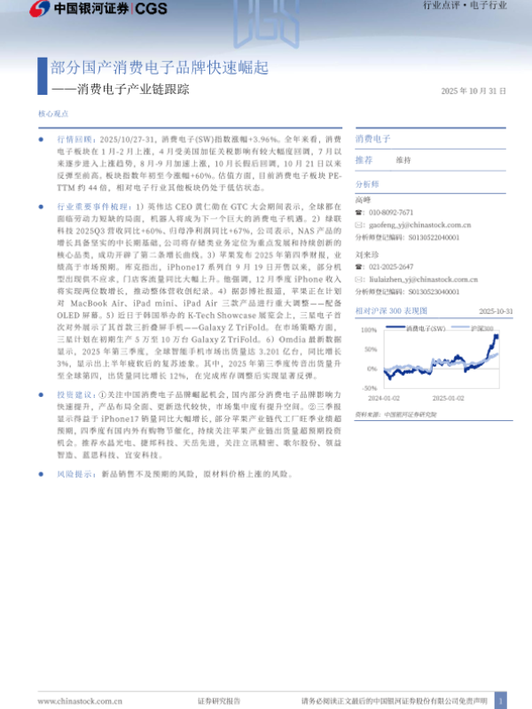 【银河证券】【202510】消费电子产业链跟踪-7页 证券期货研究报告