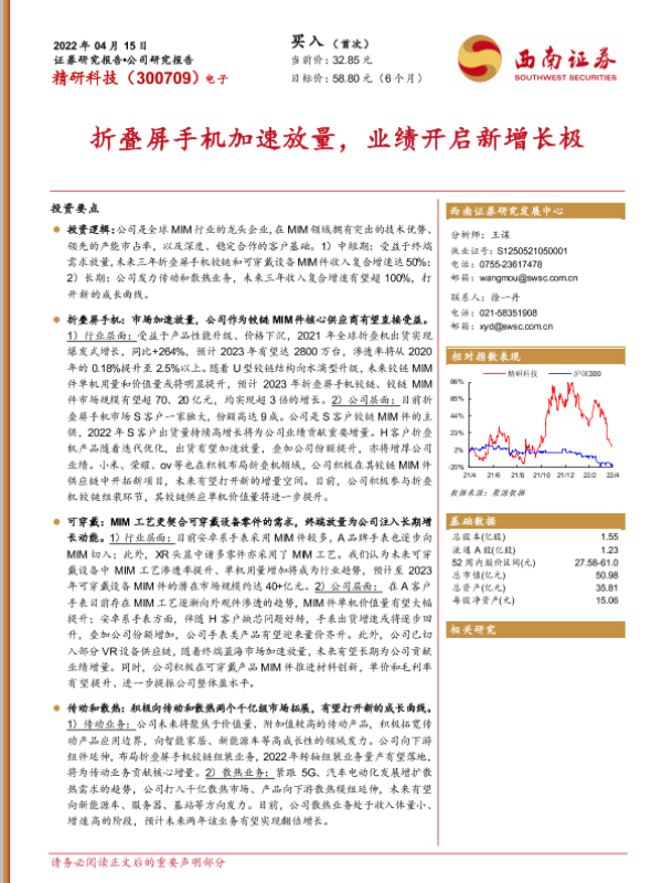 【西南证券】【20220415】精研科技-300709.SZ-折叠屏手机加速放量,业绩开启新增长极-34页 行业研究