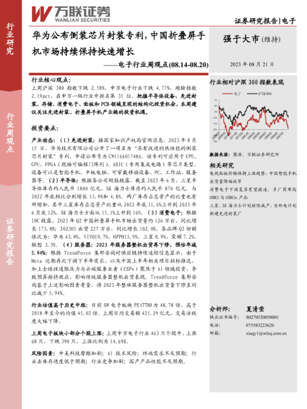 【万联证券】【20230821】华为公布倒装芯片封装专利,中国折叠屏手机市场持续保持快速增长-14页 行业研究