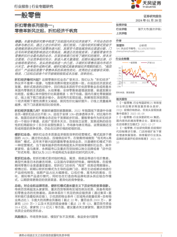 【天风证券】【20240128】折扣零售系列报告一:零售革新风正起,折扣经济千帆竞-21页 行业研究