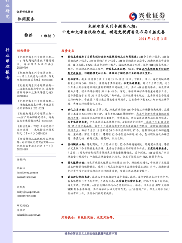 【兴业证券】【20211203】免税电商系列专题第八期:中免加大海南扶持力度,新进免税商香化布局日益完善-21页 行业研究