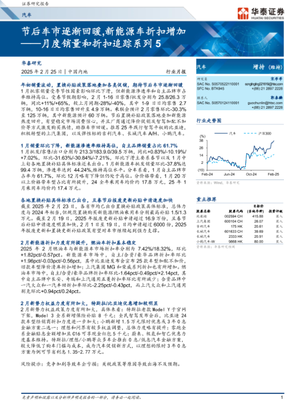 【华泰证券】【20250225】节后车市逐渐回暖,新能源车折扣增加——月度销量和折扣追踪系列5-22页 行业研究
