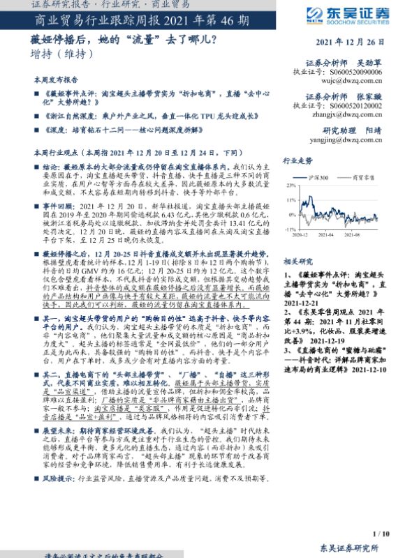 【东吴证券】【20211226】商业贸易行业跟踪周报2021年第46期:薇娅停播后,她的“流量”去了哪儿?-10页 行业研究