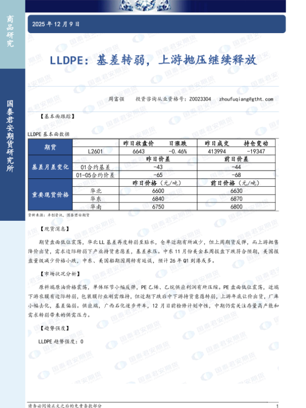【国泰君安期货】【202512】LLDPE:基差转弱,上游抛压继续释放-2页 证券期货研究报告
