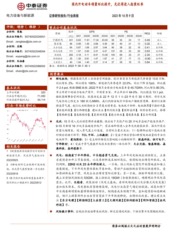 【中泰证券】【20221009】电力设备与新能源行业周报:国内外电动车销量环比提升,光伏将进入抢装旺季-28页 行业研究