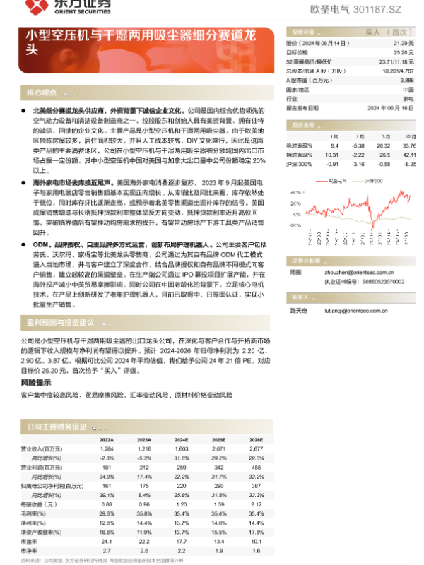 【东方证券】【20240616】欧圣电气——小型空压机与干湿两用吸尘器细分赛道龙头-24页 行业研究