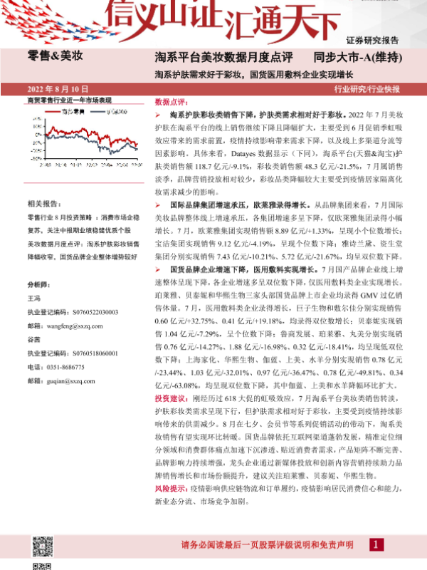 【山西证券】【20220810】20220810-山西证券-淘系平台美妆数据月度点评:淘系护肤需求好于彩妆,国货医用敷料企业实现增长-4页 行业研究