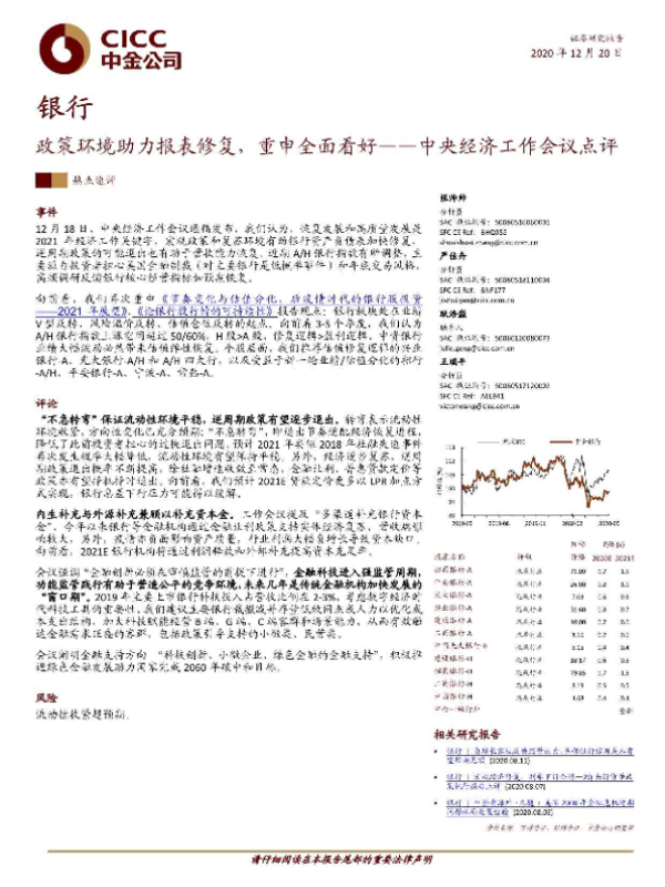 【中金公司】【20201220】中央经济工作会议点评:政策环境助力报表修复,重申全面看好-7页 行业研究
