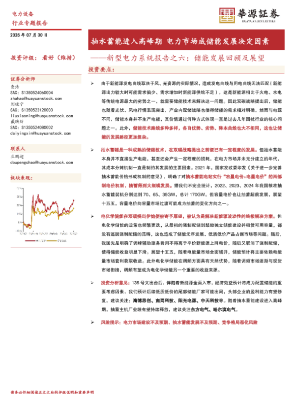 【华源证券】【202507】新型电力系统报告之六:储能发展回顾及展望-18页 证券期货研究报告
