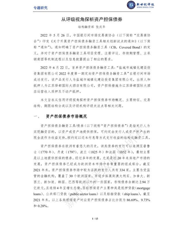 【新世纪评级】【20220526】从评级视角探析资产担保债券-13页 行业研究
