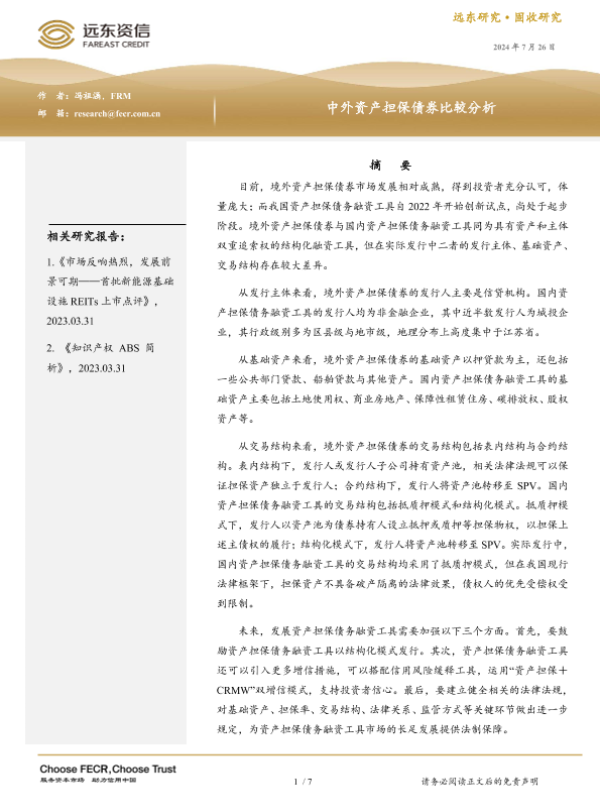 【远东资信】【20240726】中外资产担保债券比较分析-12页 行业研究