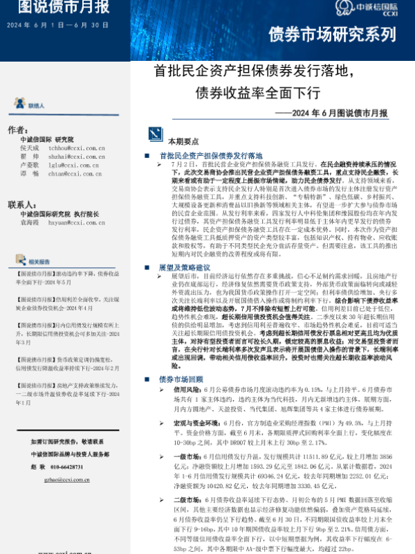 【中诚信国际】【20240601】【图说债市月报】首批民企资产担保债券发行落地,债券收益率全面下行-20页 行业研究