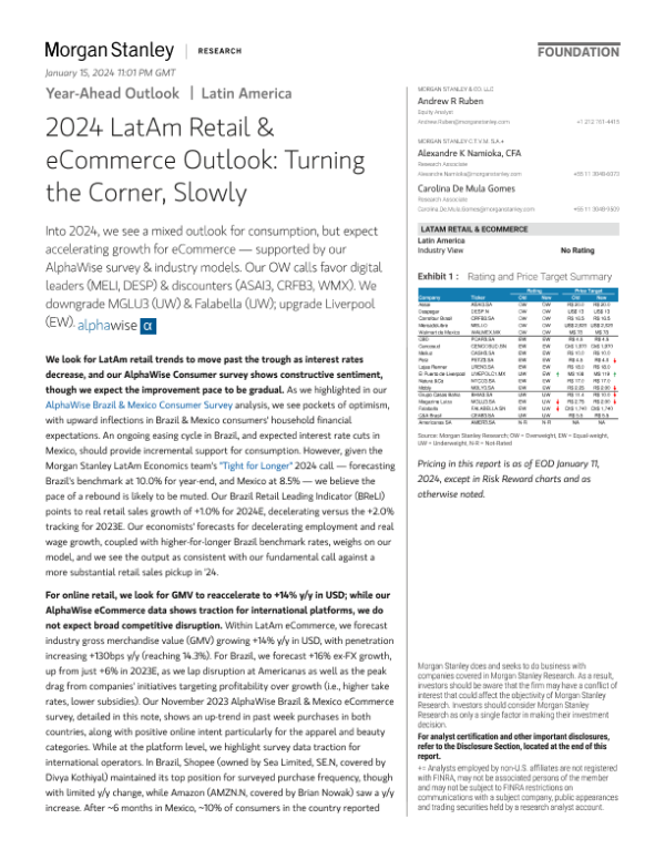 【Morgan Stanley】【20240111】2024年拉丁美洲零售和电子商务展望:逐渐复苏-145页 行业研究